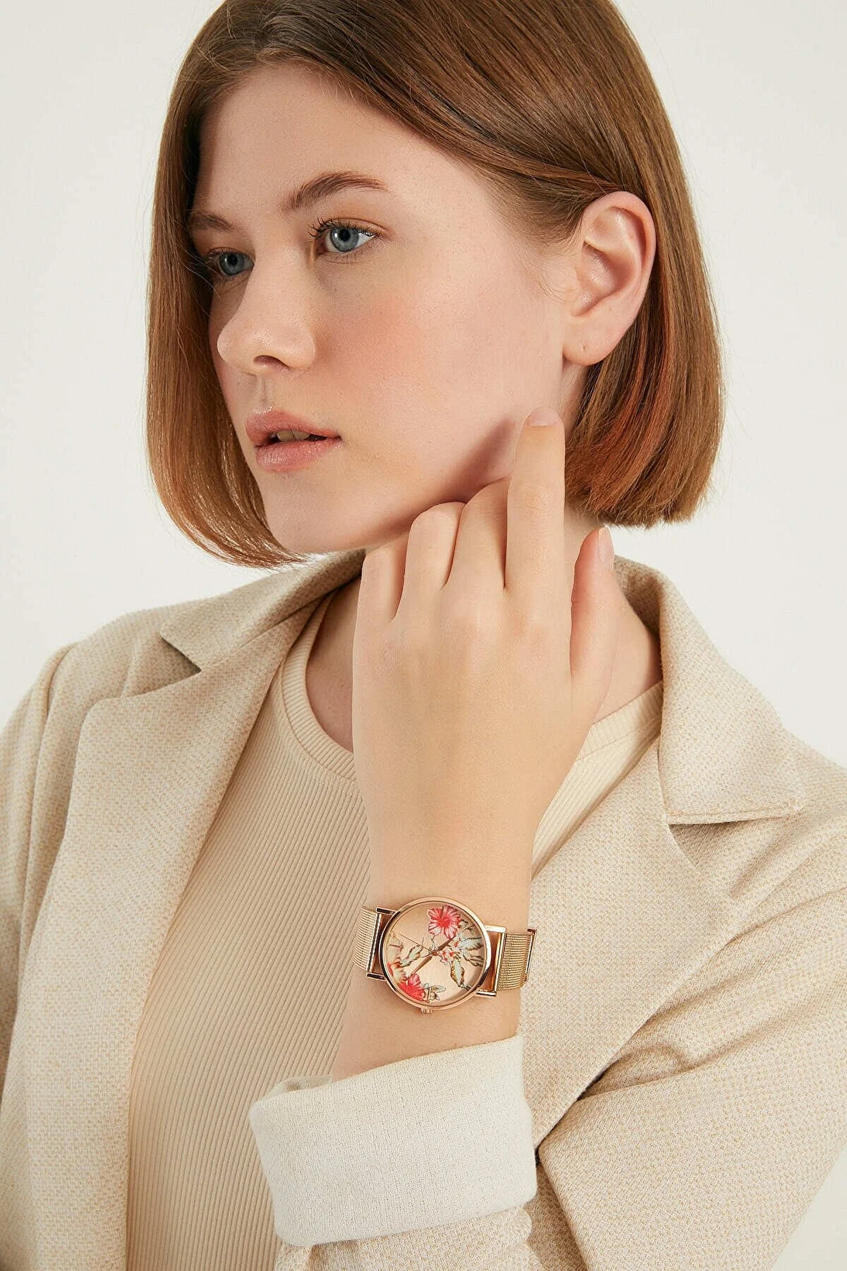Kadın Çiçekli Hasır Metal Kol Saati
